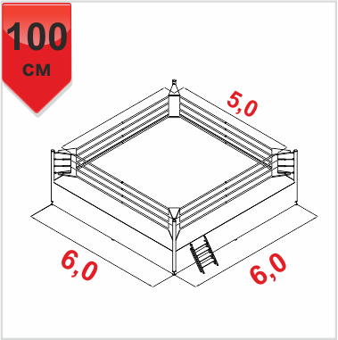 Боксерский ринг ПРОФЕССИОНАЛЬНЫЙ помост 6х6х1м. канаты 5х5 м. (3457346)