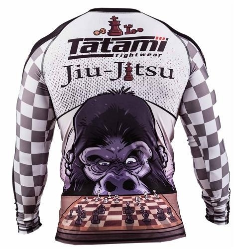 Еще один потрясающий дерзкий рашгард от талантливого Криса Бернса. На работе изображена горилла, играющая в шахматы джиу-джитсу.