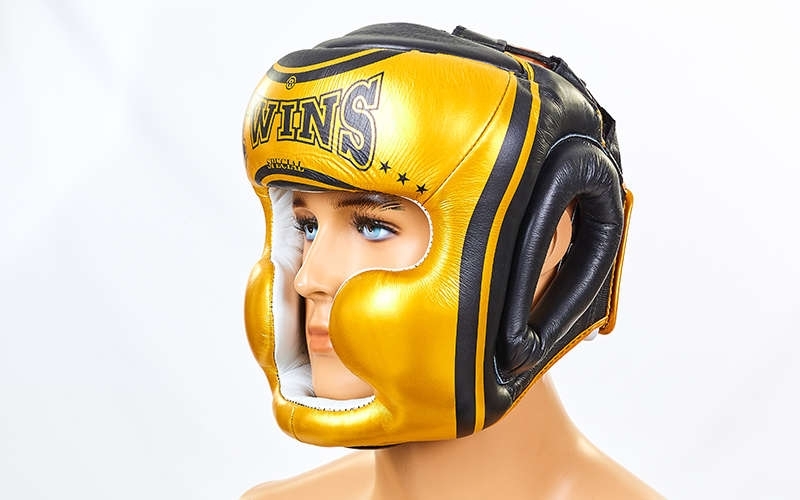Шлем боксерский с полной защитой кожаный TWINS FHG-TW4GD-BK Золотой/Черный