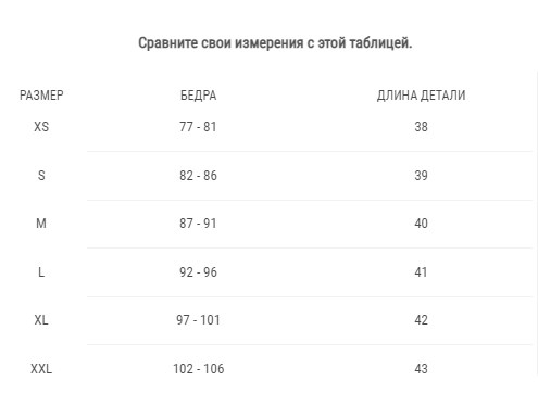Размерная сетка: