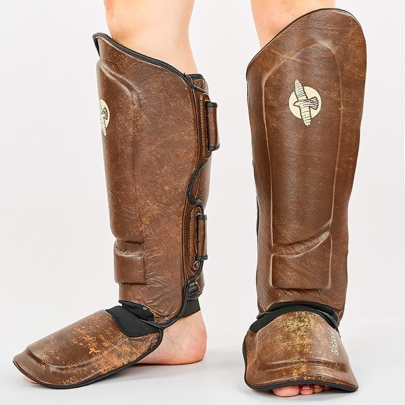 Защита для голени и стопы Муай Тай, ММА, Кикбоксинг кожаная (Реплика)